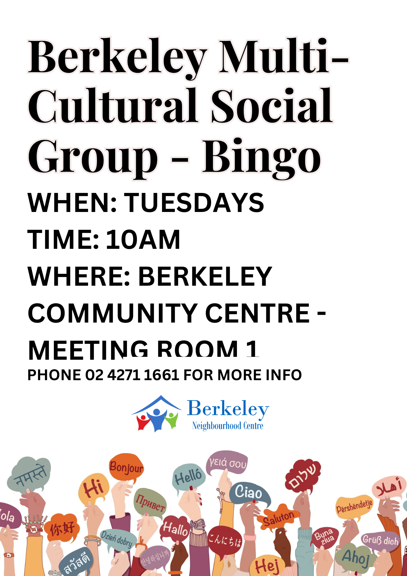 Join our vibrant Multicultural Social Group every Tuesday at 10 am for connection, laughter, and fun! It's a welcoming space for all backgrounds to share, make new friends, and celebrate diverse cultures through engaging activities, including bingo.